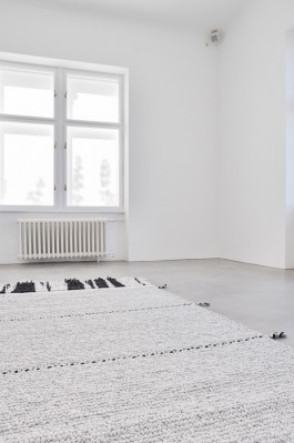 The carpet represents an interaction device, acting as mediating surface between furnishing items, technology and aesthetic production. It is a soft sensor, aiming to bring the swipe and scroll movements back outside onto a tactile interface. Not the aesthetics of technology is in the forefront but tangible values of handcraft and quality of a soft and comfortable texture.